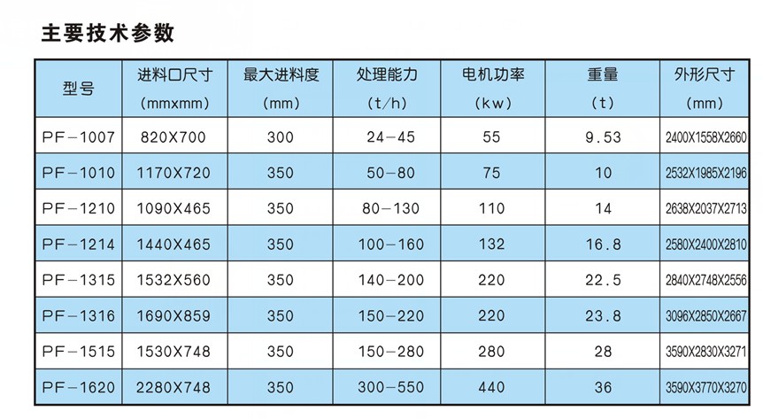 破碎功能全、生產(chǎn)率高、機(jī)件磨耗小、綜合效益高;